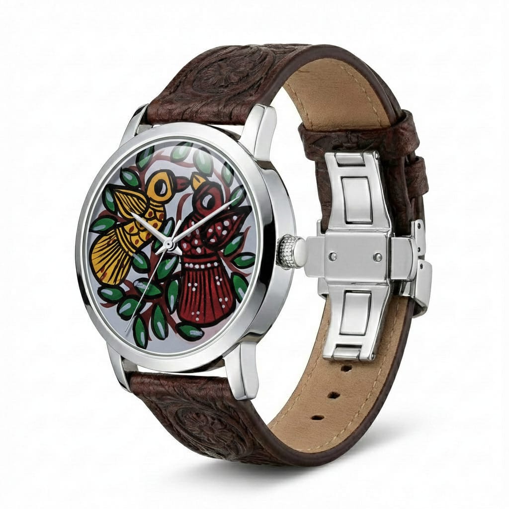 The dial artwork is an original hand-painted creation, inspired by classical Indian art and cultural symbolism.