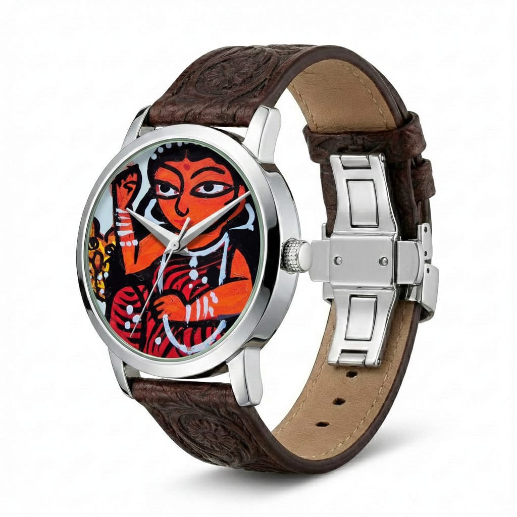 The dial artwork is an original hand-painted creation, inspired by classical Indian art and cultural symbolism.